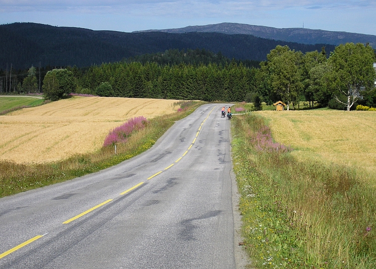 across the plains, the road goes down to the Setesdal Valley. After a long descent I